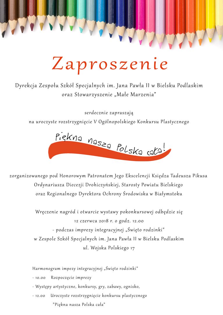 Zespół Szkół Specjalnych im. Jana Pawła II w Bielsku Podlaskim oraz „Małe Marzenia” Stowarzyszenie Pomocy Dzieciom Niepełnosprawnym i Osobom Potrzebującym Wsparcia organizatorzy Ogólnopolskiego Konkursu Plastycznego „Piękna nasza Polska cała!”, umieścili na stronie internetowej werdykt szacownego jury. Mottem projektu artystycznego i inspiracją do pracy twórczej były słowa Świętego Jana Pawła II : "Piękno tej ziemi skłania mnie do wołania o jej zachowanie dla przyszłych pokoleń.”